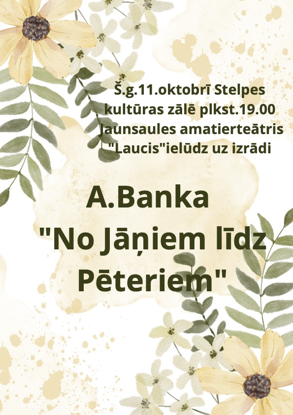 11. oktobrī 19.00 Stelpes kultūras zālē Jaunsaules amatierteātris “Laucis” ielūdz uz izrādi A. Banka NO JĀŅIEM LĪDZ PĒTERIEM