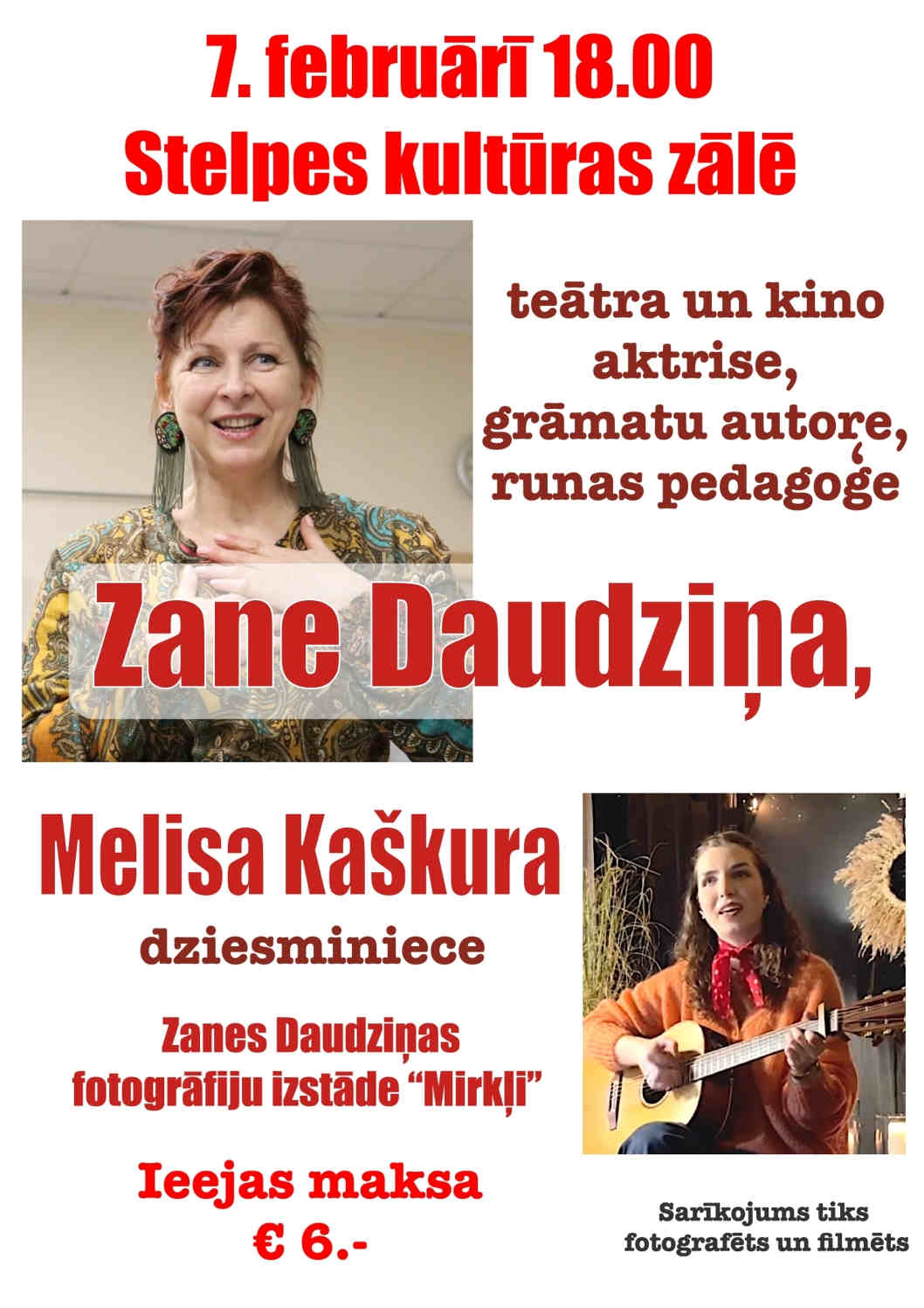 Tikšanās ar teātra un kino aktrisi, grāmatu autori, runas pedagoģi ZANI DAUDZIŅU un dziesminieci MELISU KAŠKURU.