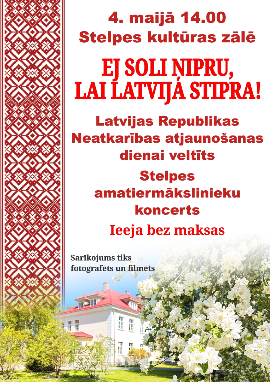 4. maijā 14.00 Stelpes kultūras zālē