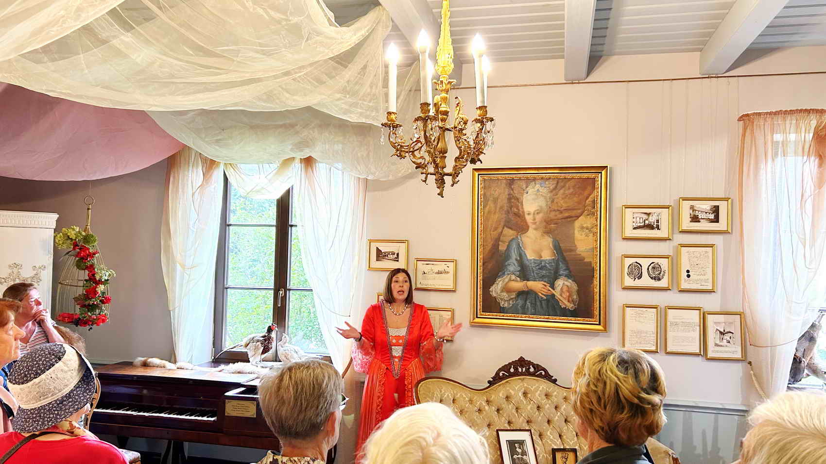Kad veram durvis, nonākam brīnumainā pasaulē ar greznām mēbelēm, medību trofejām, dzīvnieku izbāzeņiem. Pretī mums nāk – pati baronese Jakobīne – koši sarkanā kleitā un aizrautībā mirdzošām acīm. Viņa aicina mūs tālāk iekšā, sarunājas, atgādina slavenos barona Minhauzena stāstus un galu galā pierāda, ka tie visi ir patiesi. Ticiet vai nē, tas viss reiz patiešām noticis ar baronu Minhauzenu!