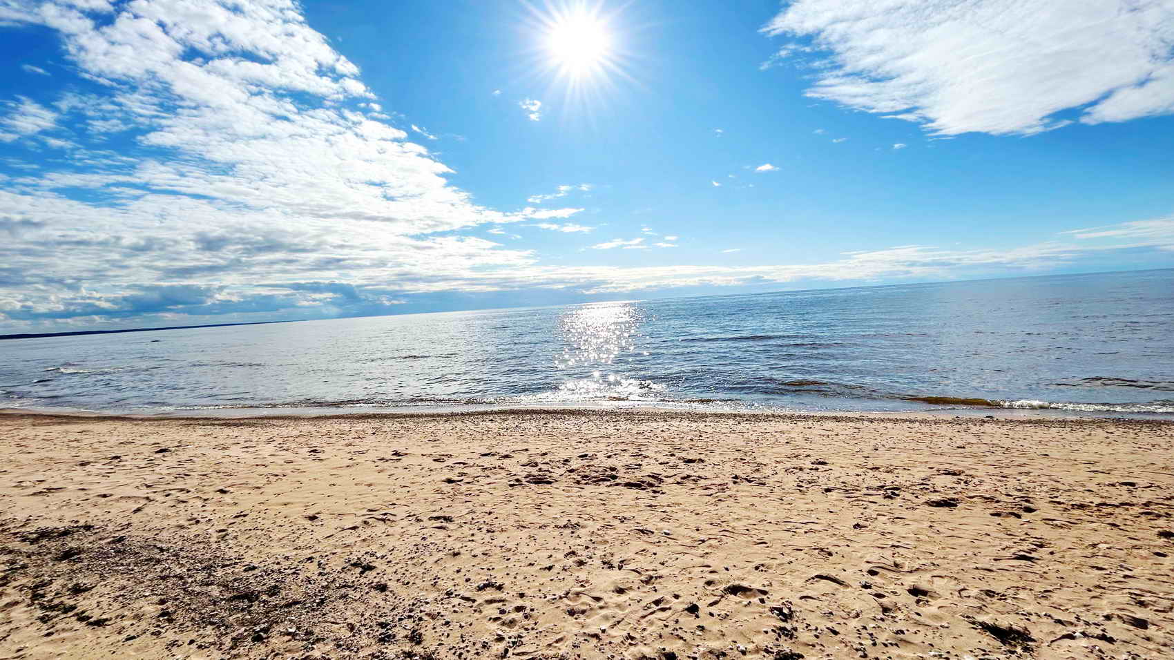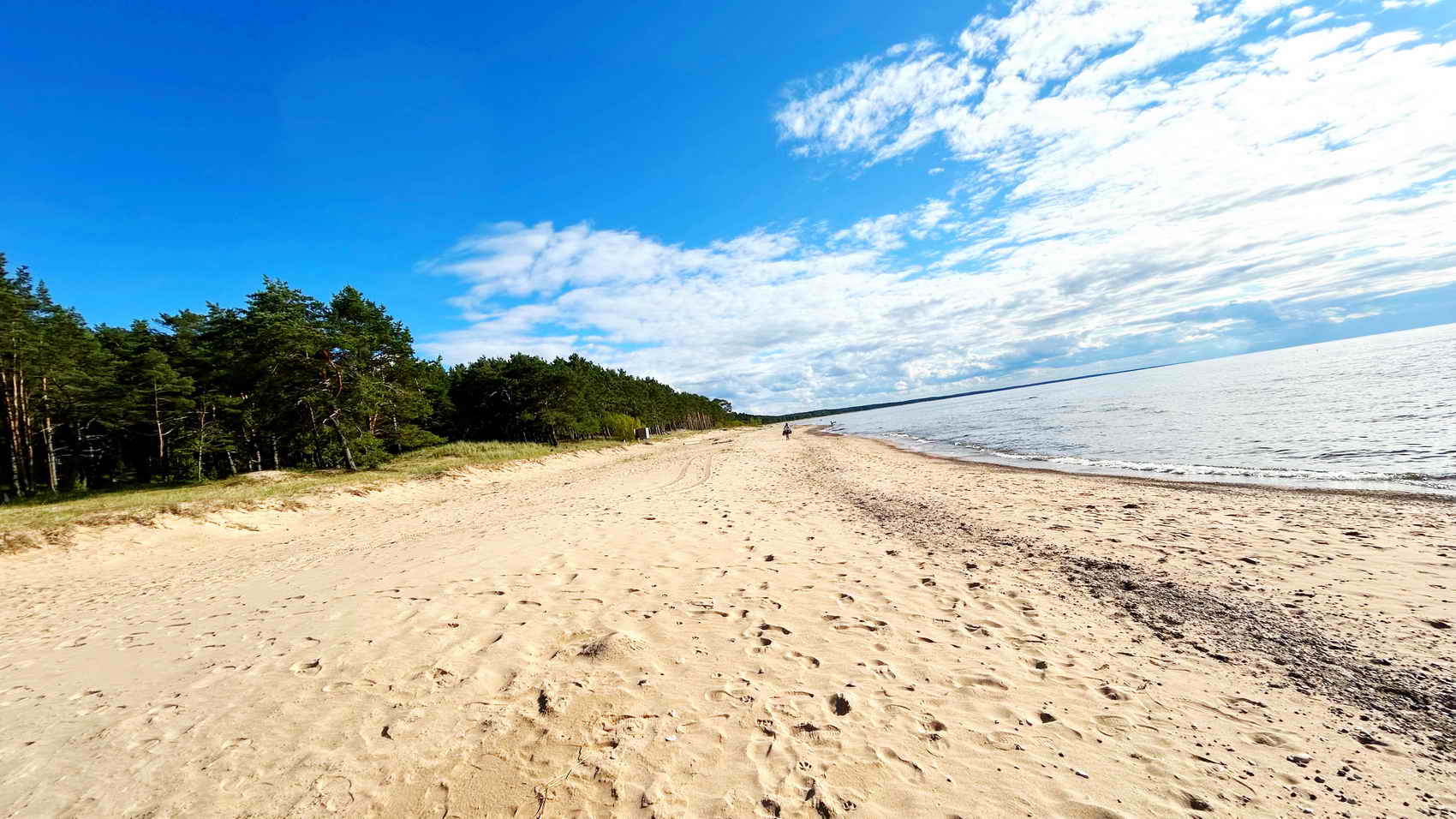 Kaut gribētos vēl ilgi baudīt, jautāt, vienkārši būt šajā skaistajā vietā, saulīte mudina mūs posties atkal ceļā. Gribam taču kaut mazu brīdi sajust smilti, kāpas, jūru! Dažam ceļotājam ar nolūku ņemts līdz peldkostīms.